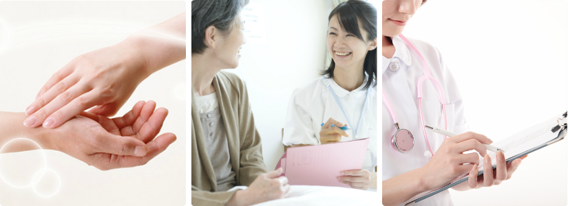 医師の指示のもと、訪問看護ステーションから看護師が、ご利用者宅に訪問し、病状や療養環境を看護の専門的な目で見守ります。適切な判断と看護ケアで、ご利用者が安心して安全に在宅での療養生活が送れるよう支援します。
